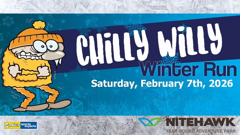 Chilly Willy Winter Run, Grande Prairie, AB: Join us for the 11th Annual “Chilly Willy” Winter Run on Saturday, February 7th, 2026. With 5km, 10km & 20km race distances, this event has something for all fitness ability levels! Run or Walk… have fun with friends and experience the Muskoseepi Park Trails in the middle of Winter!